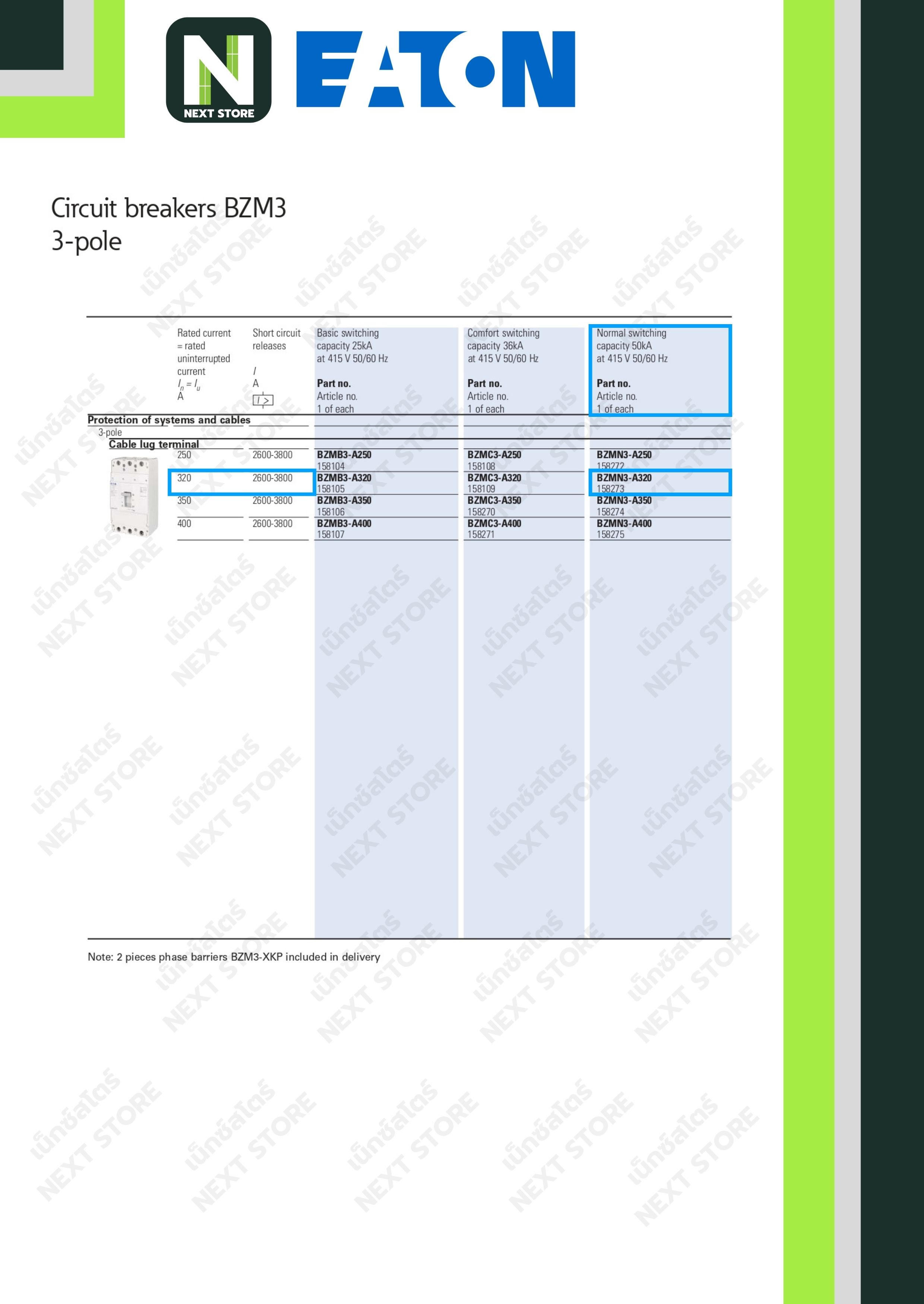 เบรกเกอร์ MCCB 3P 320AT/400AF 50kA at 415V รุ่น BZMN3-A320 / Circuit Breaker MCCB 3P