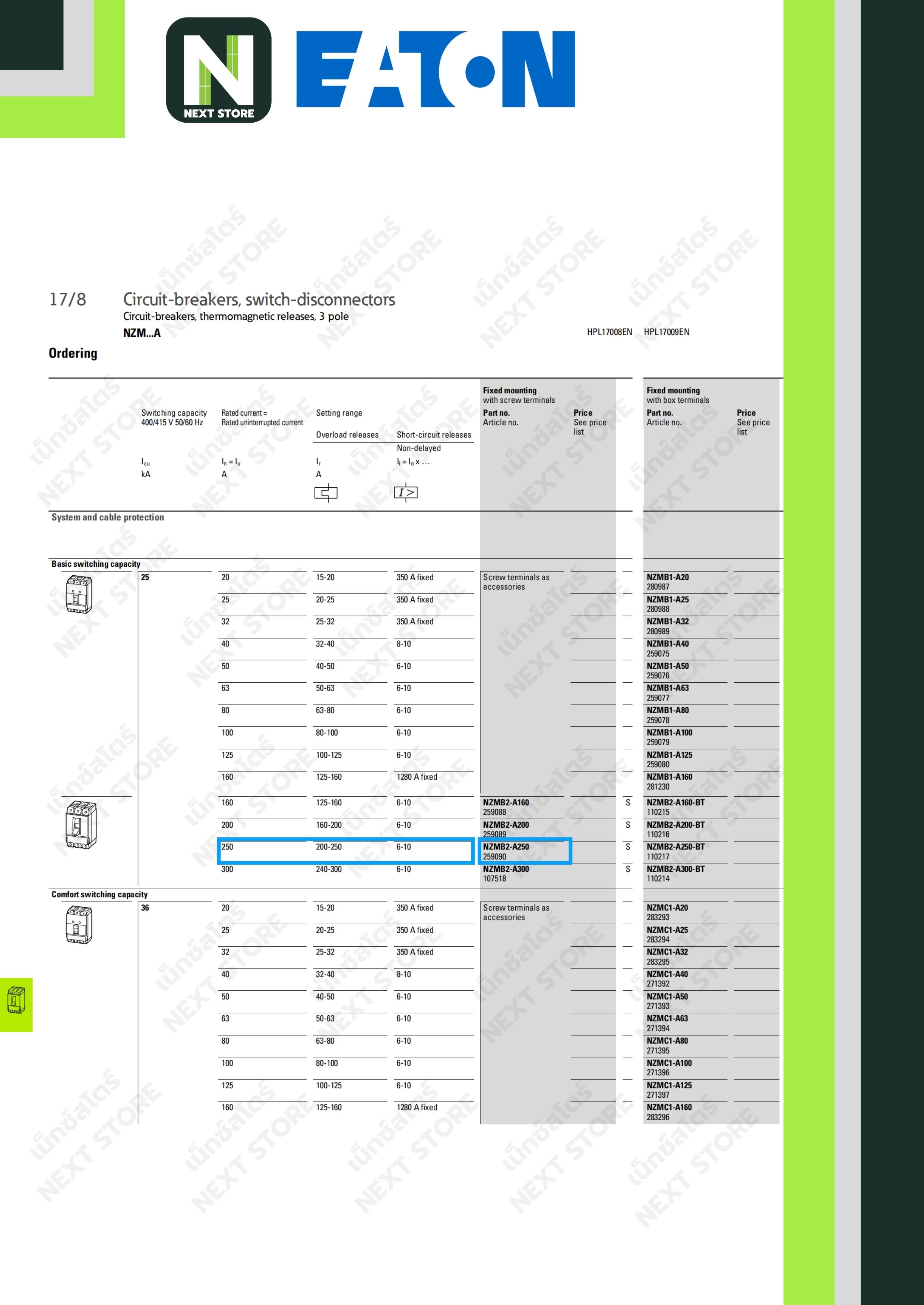 รุ่น : NZMB2-A250-AS