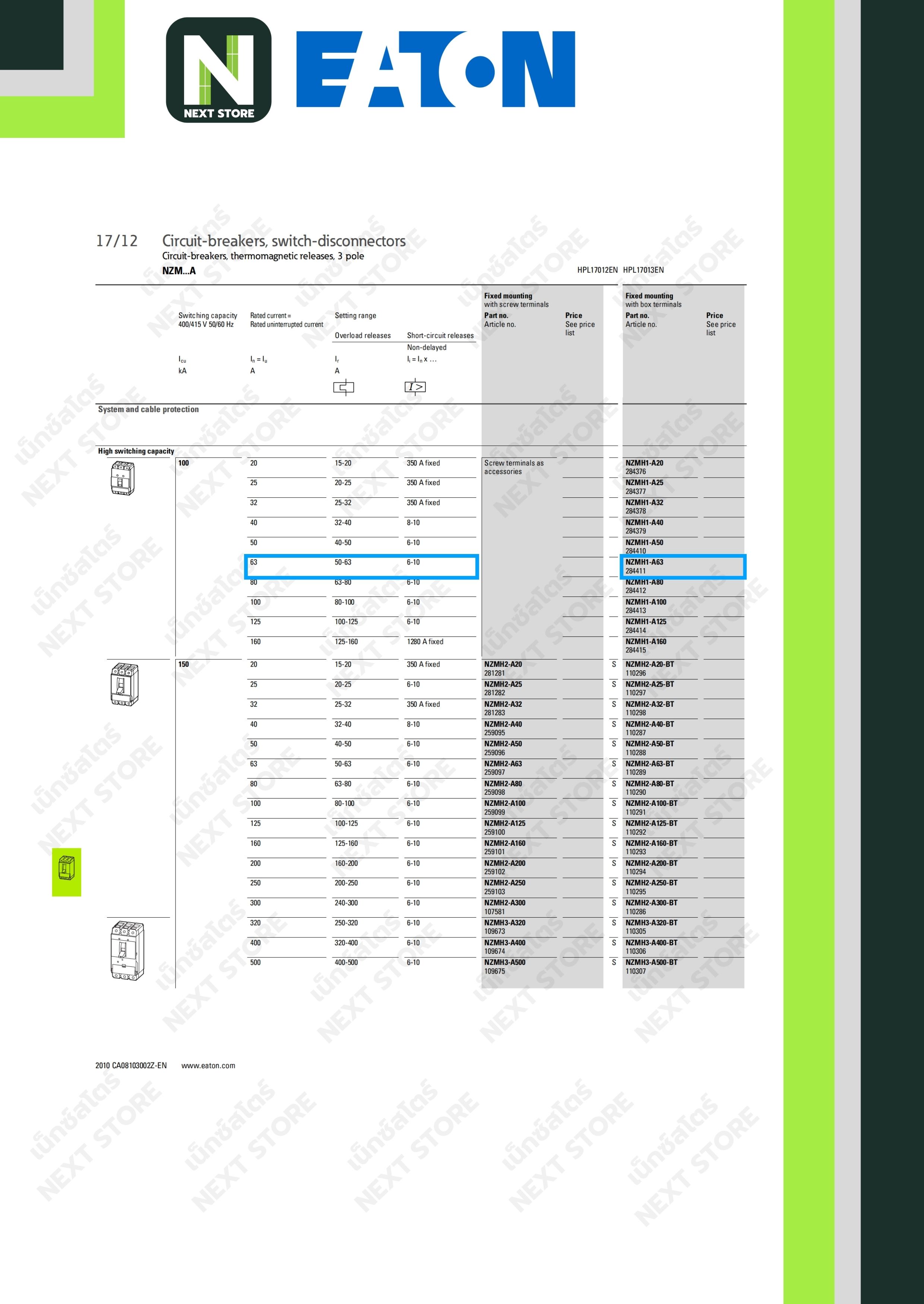 เบรกเกอร์ MCCB 3P 50-63AT/160AF 100kA at 415V รุ่น NZMH1-A63 / Circuit Breaker MCCB 3P